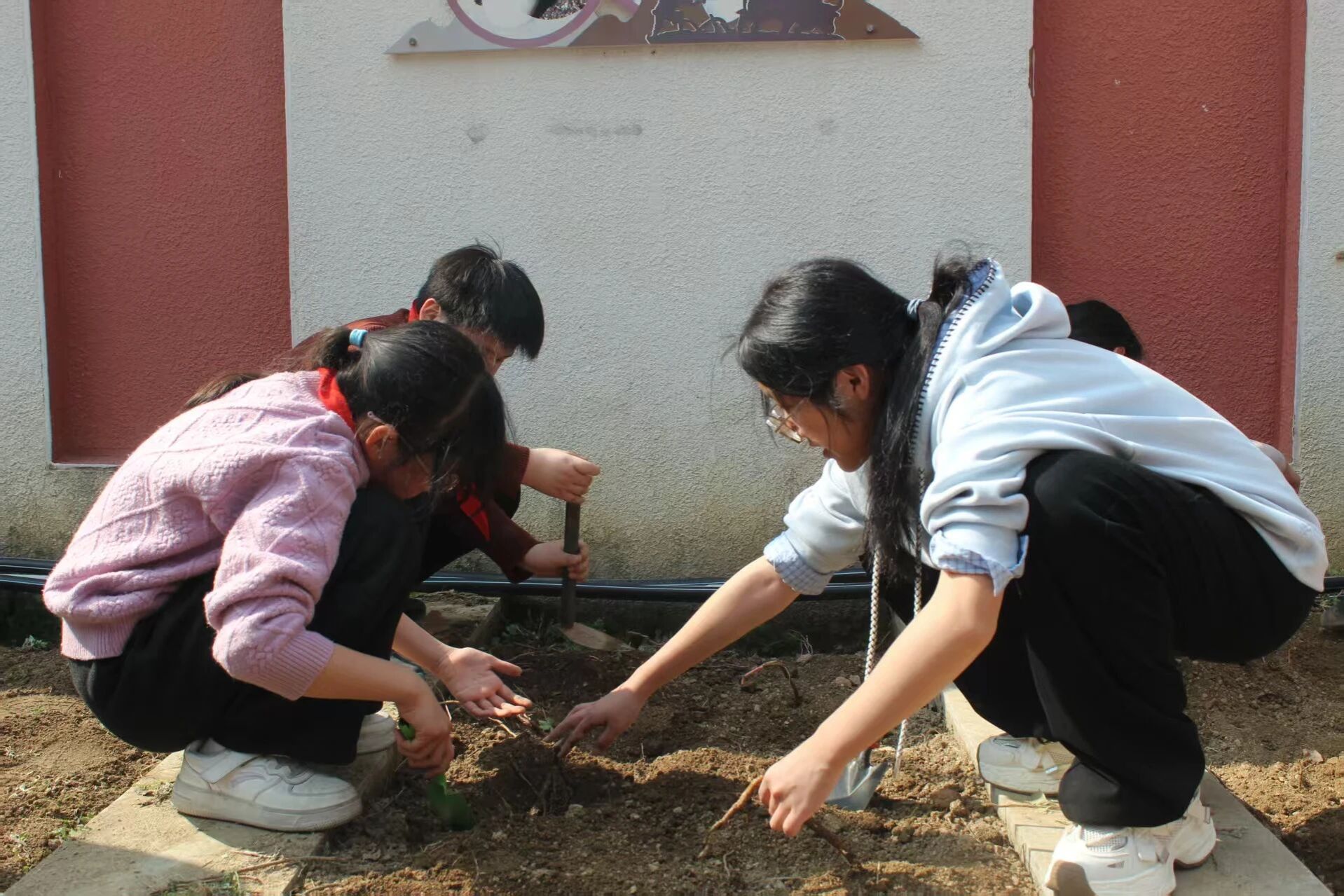 活动现场热情高涨,众多“科技小苗”在师生志愿者帮助指导下,纷纷拿起小铁锹、小水桶,认真开展平地、挖坑、种苗、培土、浇水等操作,一起栽种了黄精、白芍、牡丹、玄参等十余种近300平方区域的中药材幼苗。大家一同感受生命的力量,体验劳动的快乐,学习中药的科技密码。